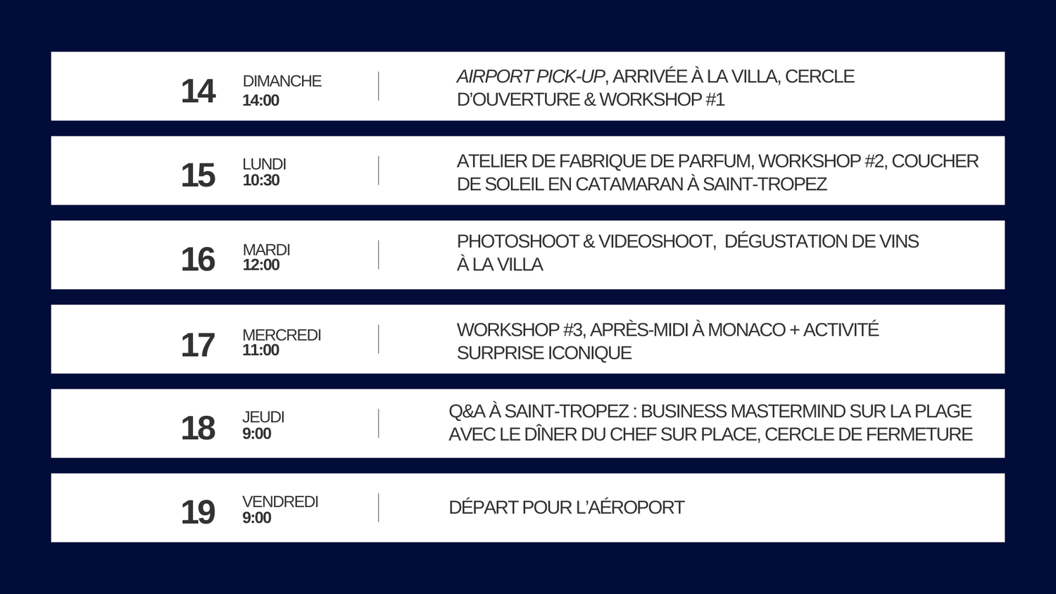 Cette retraite sera bien plus qu’un séjour sur la Côte d’Azur ce sera un mélange parfait entre bien-être, élévation, révélation, apprentissage.
